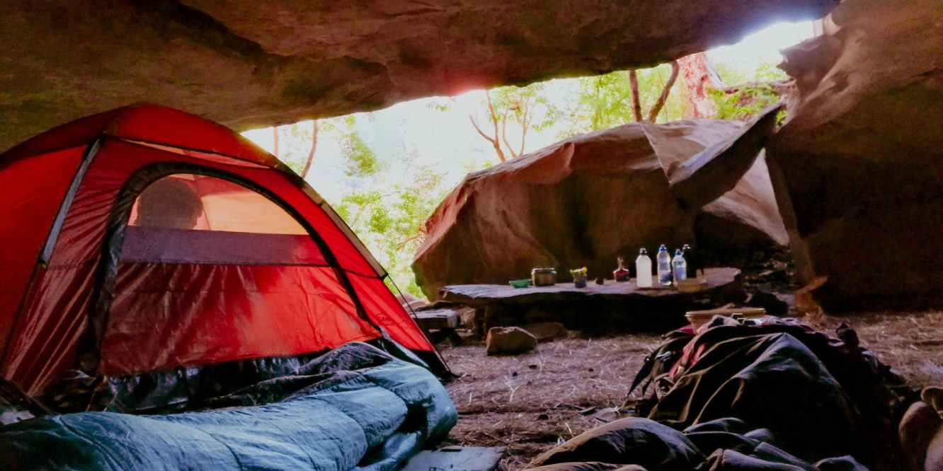 Camping under a rock ledge like that would make me too nervous to sleep.