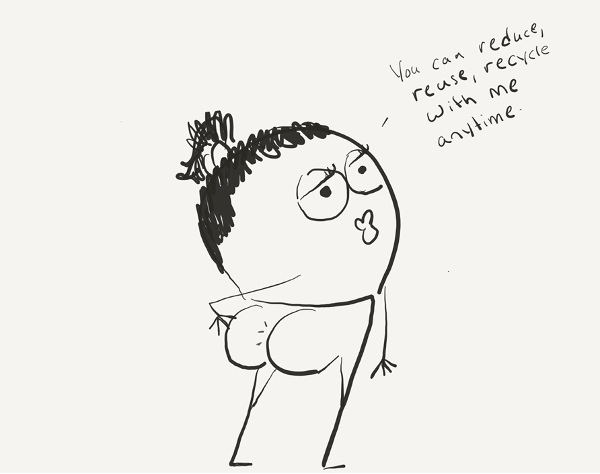 So, there you have it. You don’t have to be politically minded to join the challenge. You don’t really even have to care about the Earth at all to be eco-friendly. You just have to think with your junk. You’re welcome for connecting us all. I am happy to help.