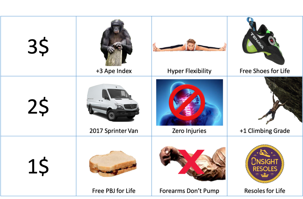 Anyway, these constant downtime hypotheticals, got me thinking ‘if climbers were offered a few level-up, options what would they choose?’ (Being a climber isn’t a requirement to playing along)