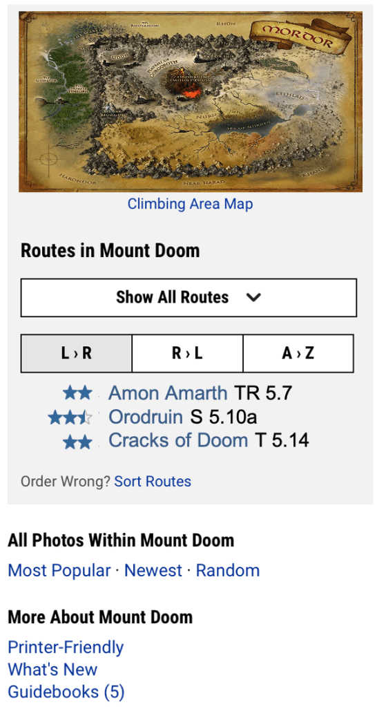 Also very cool that the Mt. Doom in California was named after the original in Mordor, thank you for the link!