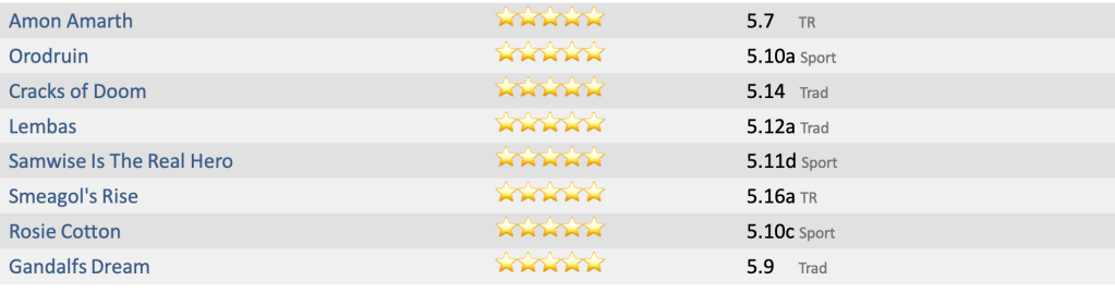 You forgot Treebeard’s Traverse, 5.8 for ents.