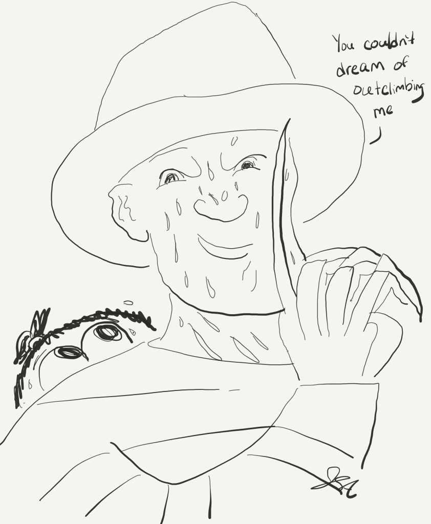 Freddy would be a great climber. Not because of his knife-like gloves but because he’s a cheat and lives in a literal dream world. I mean, he can literally extend his arms to make it to the next hold. Kinda ruins the point IMO, but it’s not like I’m gonna call him on it.