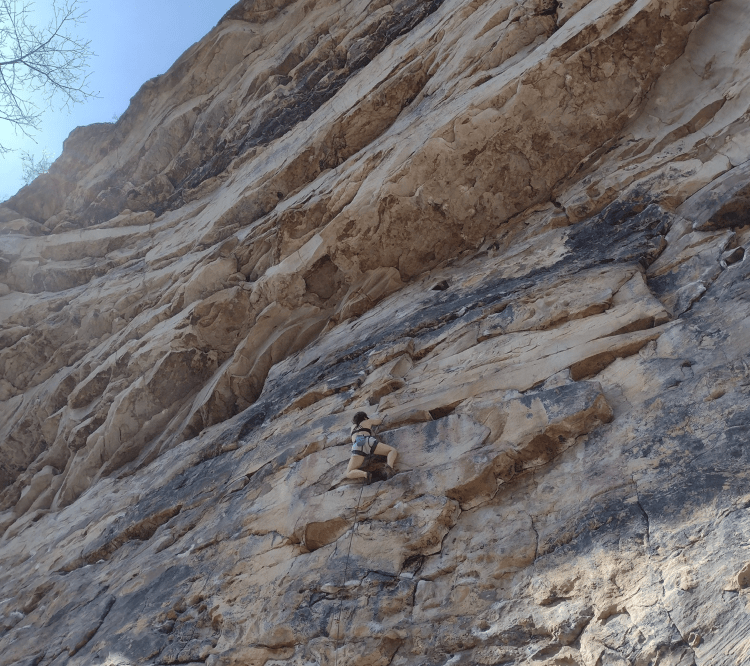 Speaking of weather, Tyranny is great for cooler days since it is covered in sun most of the day. There are big boulders in front of the wall to set up shop for the entire day. Even more, there are little stones to sit on beneath the boulders in case you want to snack or rest up in the shade. Once you’re on the wall, though, you’re in the sun, so I’d recommend some sunscreen any time of the year here. The rock here is super textured, so even if you get a little sweaty, you’ll stick.