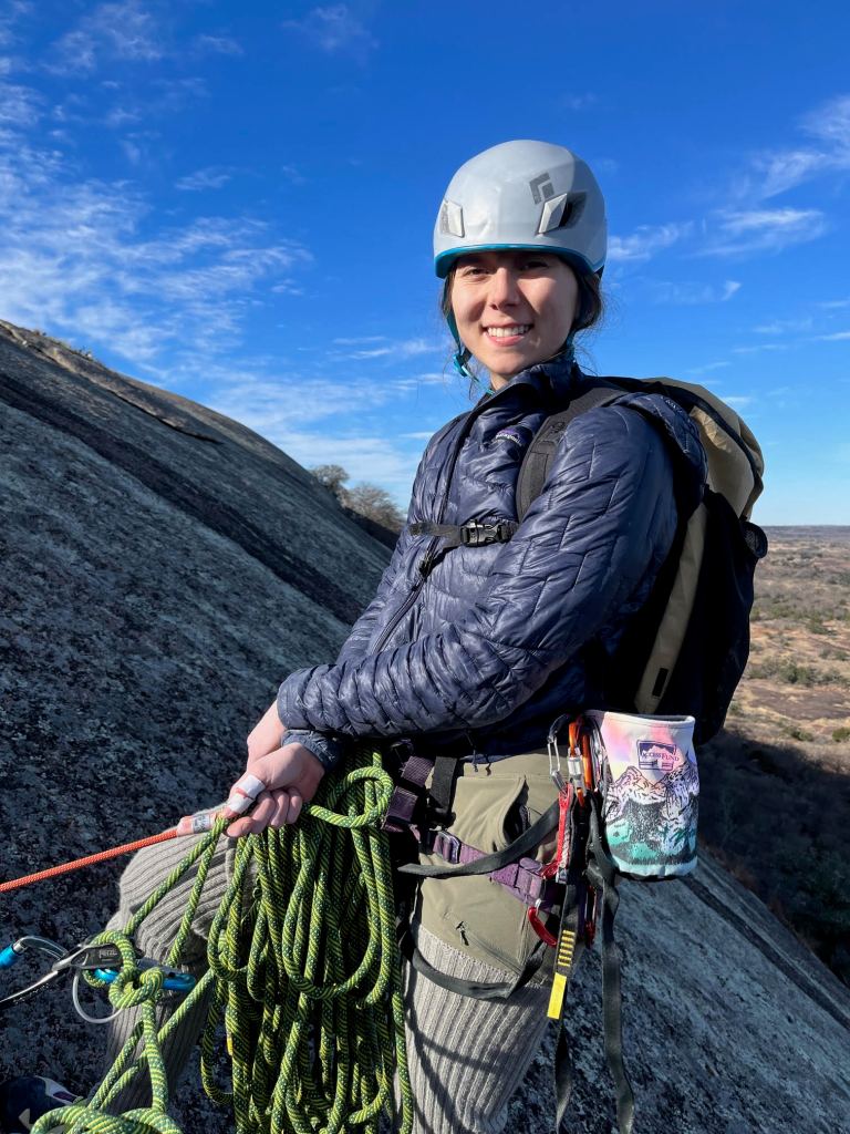 A: My husband Sean, besties Kali and Hari, and my MoCo family — Tatiana, Emmarie, Collin, Matt, Sarah J, Jessica, Amber, Liam, Taylor, Will, Ethan, and Zane! They’re always down for adventure and so incredibly supportive. Whether it’s spotting, belaying, offering snacks, or helping with beta, they make climbing feel safe, welcoming, and full of care.